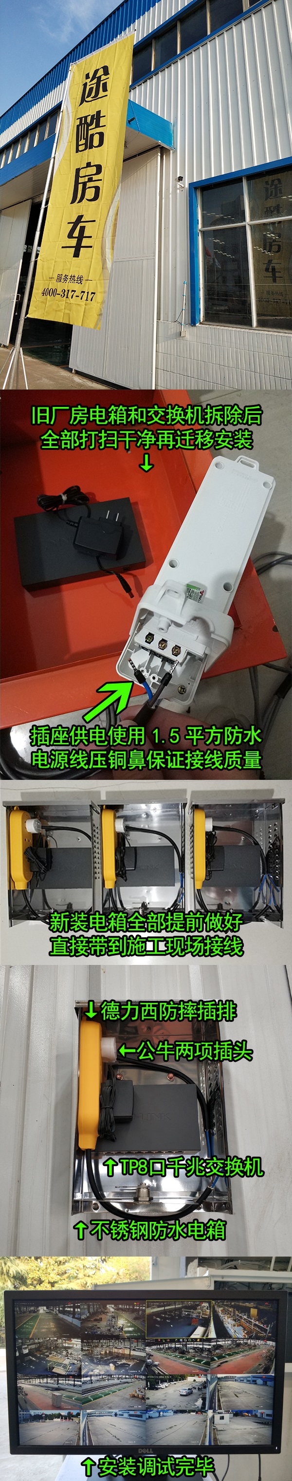2019年6月中旬,屻杰項(xiàng)目團(tuán)隊(duì)圓滿完成江蘇途酷房車科技有限公司監(jiān)控系統(tǒng)二次遷移改造工作,原有網(wǎng)絡(luò)高清攝像機(jī)全部拆除并打掃干凈連同新增設(shè)備一起安裝到新車間。